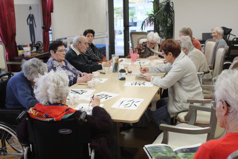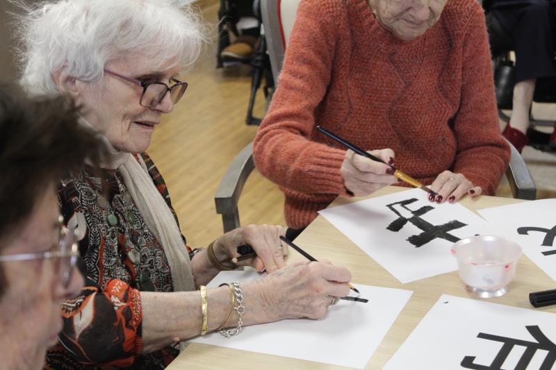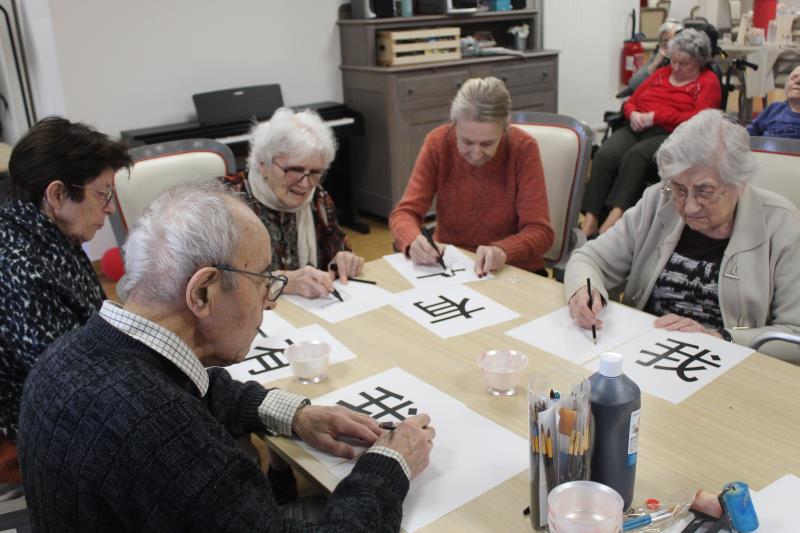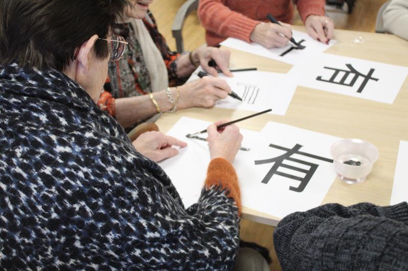 Atelier Calligraphie Chinoise ce matin ! Le nouvel an chinois aura lieu le 10 Février ! Cet atelier va permettre d'agrémenter la décoration du restaurant !