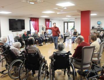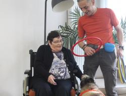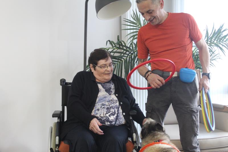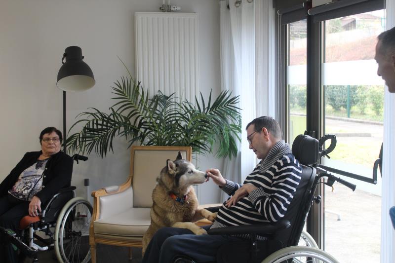 Résidence du Clos Lafitte > Actualités > Canithérapie Canithérapie Publiée le 06/02/2024 Ce matin Cheyenne est venue rendre visite aux résidents pour leur plus grand bonheur