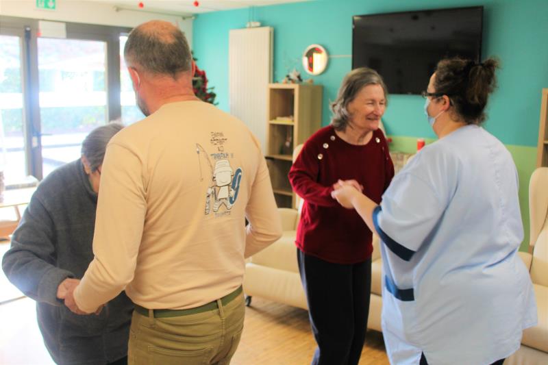 Il fait danser les résidents qui le souhaitent de toutes les unités de vie, mais aussi fait découvrir de nouveaux pas, voir de nouvelles danses.