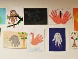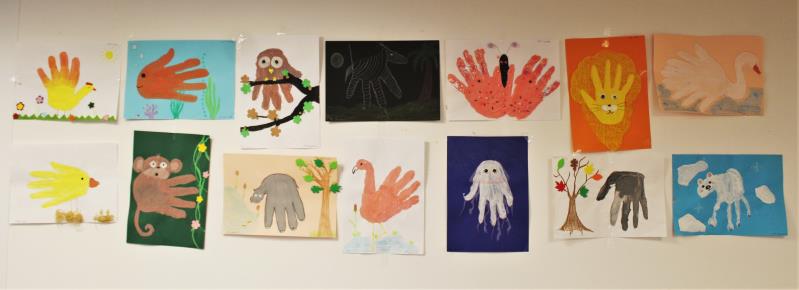 Les résidents du l'Unité Protégée François Mauriac ont utilisé leurs mains pour l'atelier artistique. La main est devenue le support pour la création d'animaux.