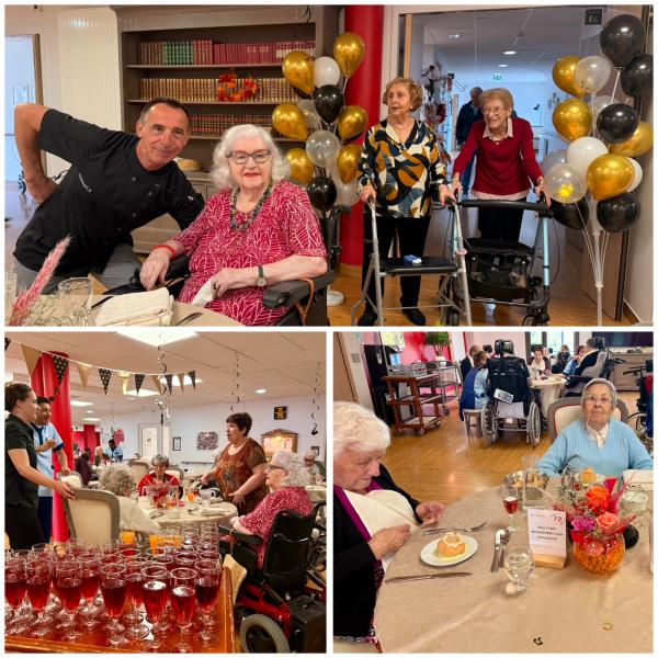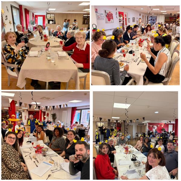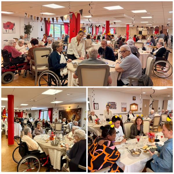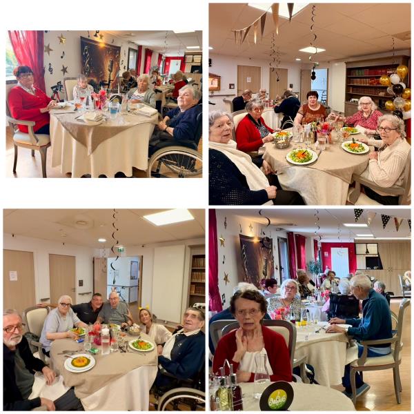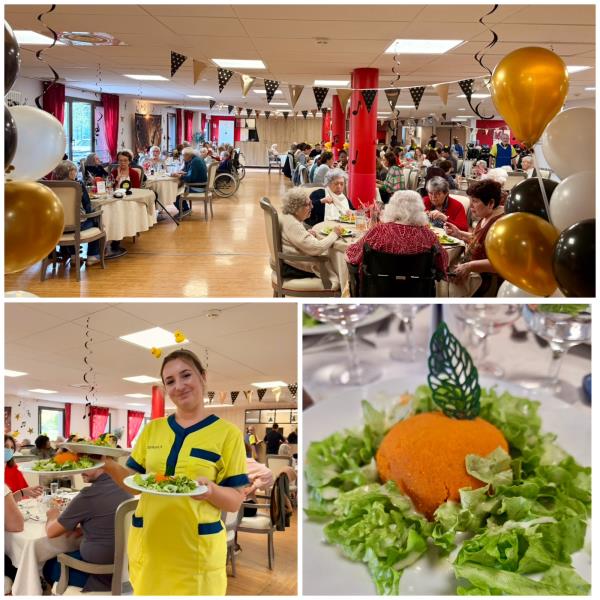 Les festivités ont commencé dès le repas du midi, les salariés de Tous services confondus, se sont joints aux résidents pour un repas festif et trompe-l'oeil préparé par nos cuisiniers pour émerveiller les papilles et les pupilles de nos résidents.