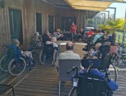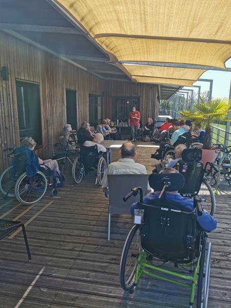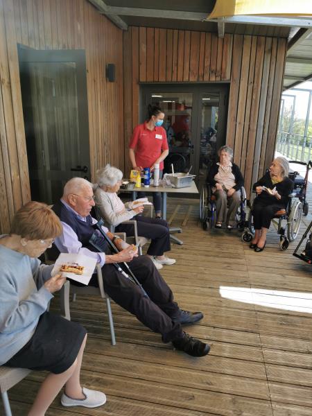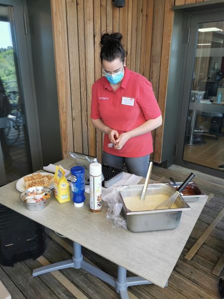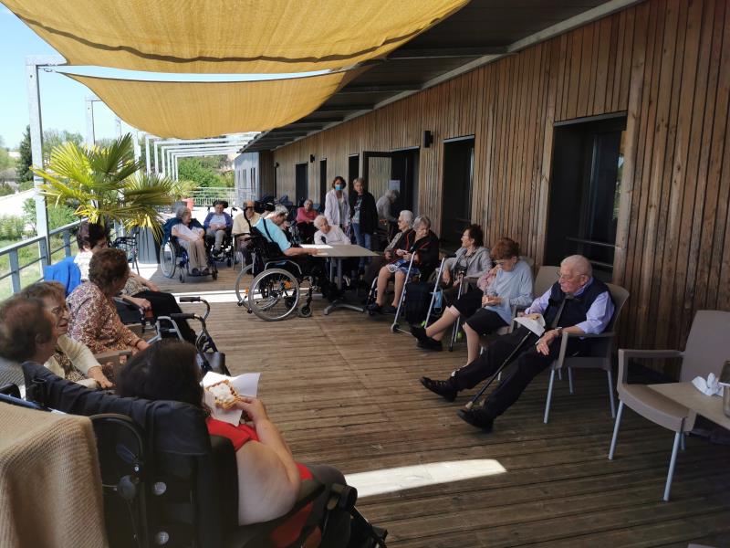 Résidence du Clos Lafitte > Actualités > Gaufres sur la terrasse Gaufres sur la terrasse Publiée le 15/04/2022 Aujourd'hui les résidents du Clos Lafitte ont pris l'air sur la terrasse avec des gaufres maison. Elle est pas belle la vie ?