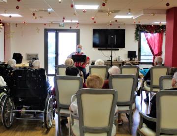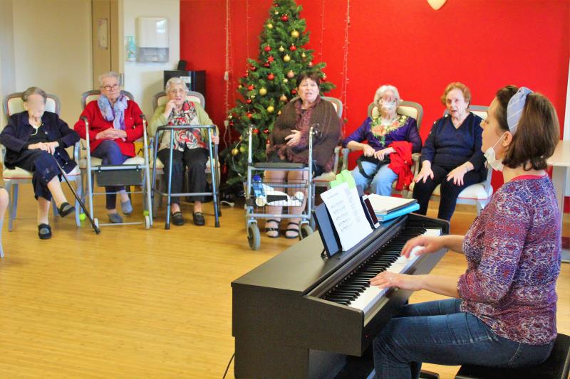 Résidence du Clos Lafitte > Actualités > La chorale pour bien commencer l'année. La chorale pour bien commencer l'année. Publiée le 02/01/2023 Éloïse, professeure de chant et de musique intervient une fois par mois pour proposer un temps de chorale aux résidents.