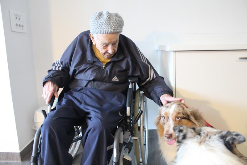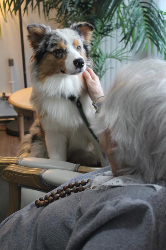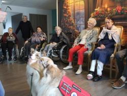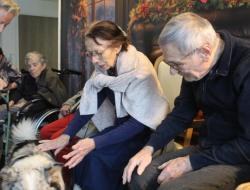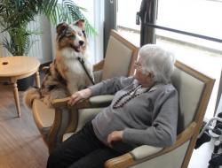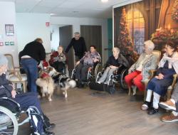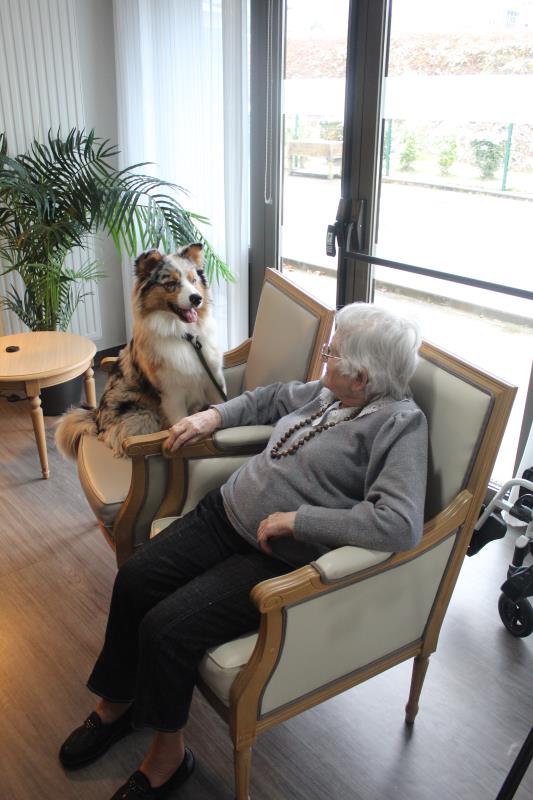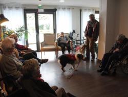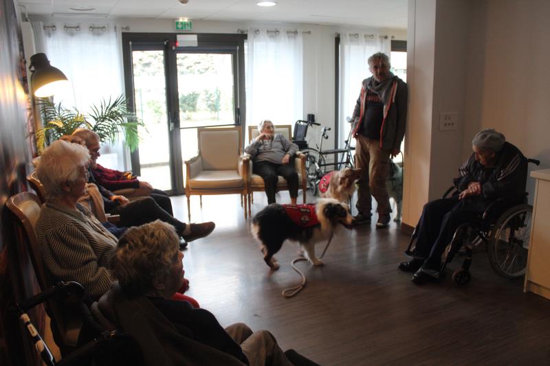Parce qu'il nous était impossible de proposer de la canithérapie à tous les résidents intéressés à raison d'une séance par semaine aux côtés de David et sa chienne Cheyenne. Nous avons fait en sorte de proposer de la médiation animale en complément tous les 15 jours les mercredis en début d'après-midi.