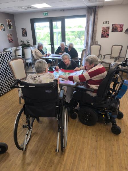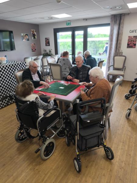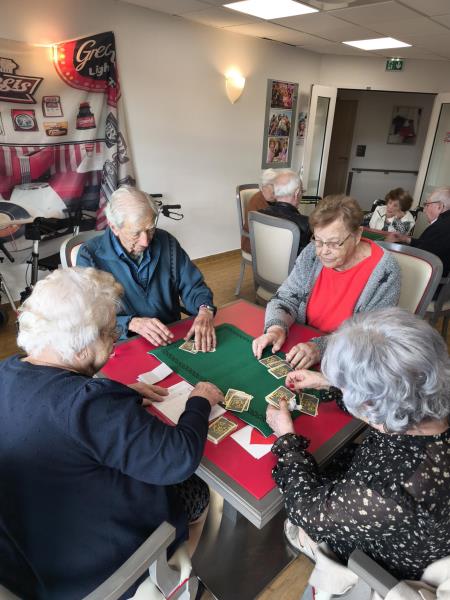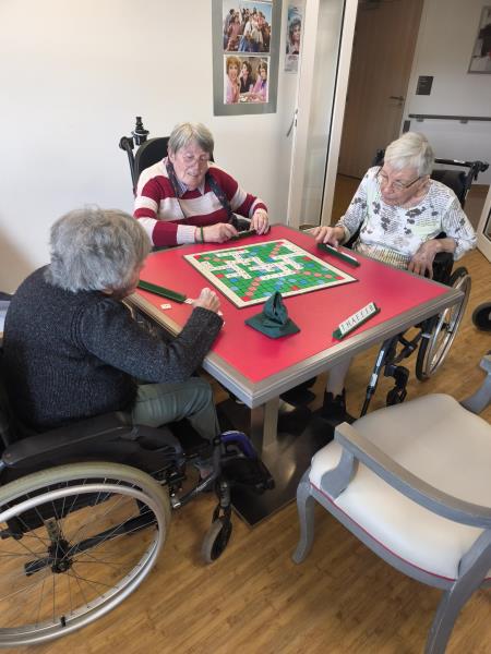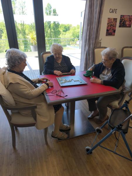Cet après-midi, les résidents ont joué au scrabble et à la belote. Une manière ludique de stimuler les fonctions cognitives et favoriser les échanges entre les résidents.