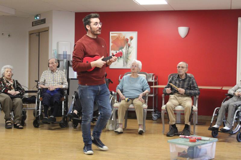 Résidence du Clos Lafitte > Actualités > Musicothérapie Musicothérapie Publiée le 01/02/2024 Jonathan était présent ce jour pour une séance de musicothérapie qui permet une bonne stimulation cognitive de manière ludique en chanson.