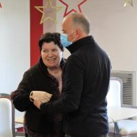 Publiée le 16/12/2022Dominique, professeur de danse de salon et compétiteur international, intervient tous les jeudis matins. Il fait danser les résidents qui le souhaitent, mais aussi découvrir de nouveaux pas, voir de nouvelles danses. Pour d'autres, la musique et le spectacle les satisfont tout autant. Lire la suite