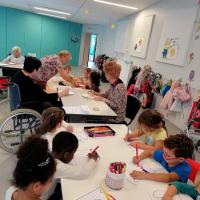 Publiée le 26/10/2022Aujourd'hui, quelques résidentes du Clos Lafitte ont eu l'occasion de passer un moment avec les enfants du centre de loisirs d'Artigues Près Bordeaux. Pour l'occasion, enfants et résidents ont réalisé des pots de sable coloré fait maison. Un très bon moment partagé. Lire la suite