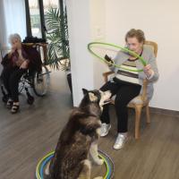 Publiée le 07/03/2023Ce matin a eu lieu l'atelier de canithérapie avec notre Miss Louve accompagnée de David. Les résidents prennent plaisir à venir à la rencontre de Miss et à faire ou à regarder les exercices proposés. Cet atelier est co-animé par David et une psychomotricienne. Lire la suite