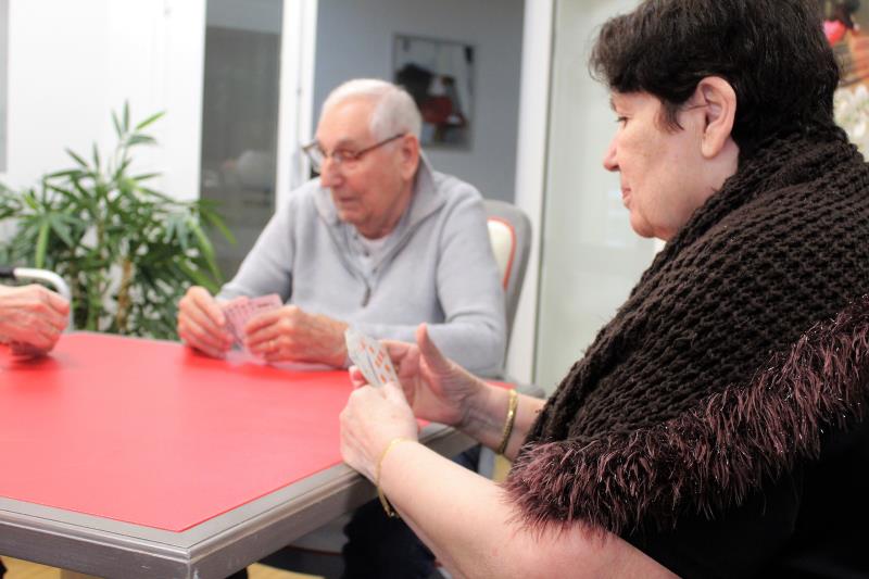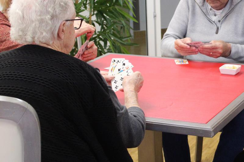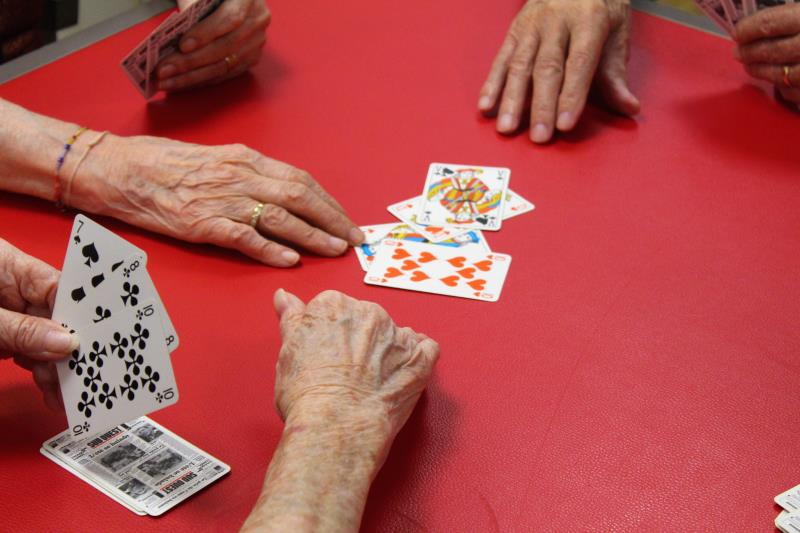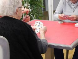 Partie de belote pour les amateurs, accessible à tous grâce à nos accessoires d'aide (cartes grands formats, carte d'atout, repère de distribution...).