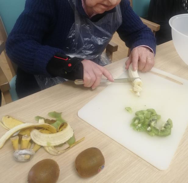 Rien de plus agréable qu'une salade de fruits fraîche par ce temps estival. Cet après-midi, les résidents de l'unité François Mauriac ont préparé une salade de fruit, certains n'ont pas pu résister à l'envie de croquer dans les fruits avant l'heure du goûter.
